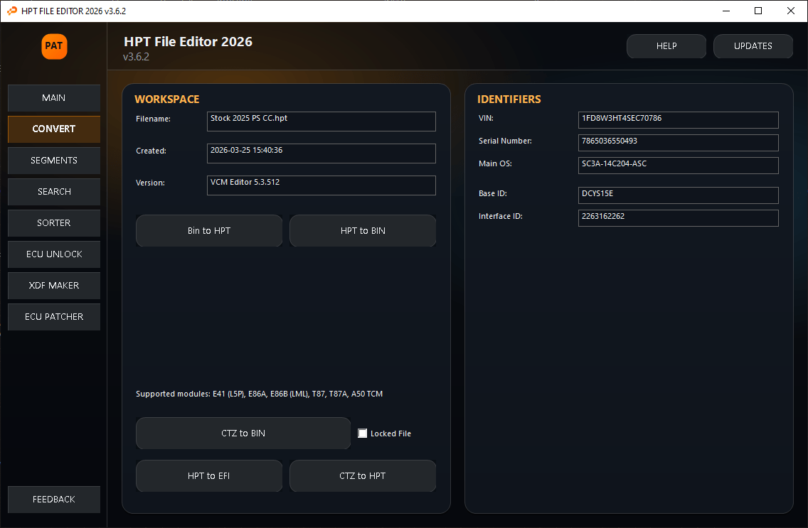 HPTeditorNew is a purpose-built desktop application designed for users who need a fast way to edit/unlock/convert when working with new HPT files. Instead of using multiple versions of vcm suite, Stay up to date with the newest file types and support. This new HPT Editor brings core operations together in a single, tab-based interface so you can move from import to output with advanced functions and better file control.